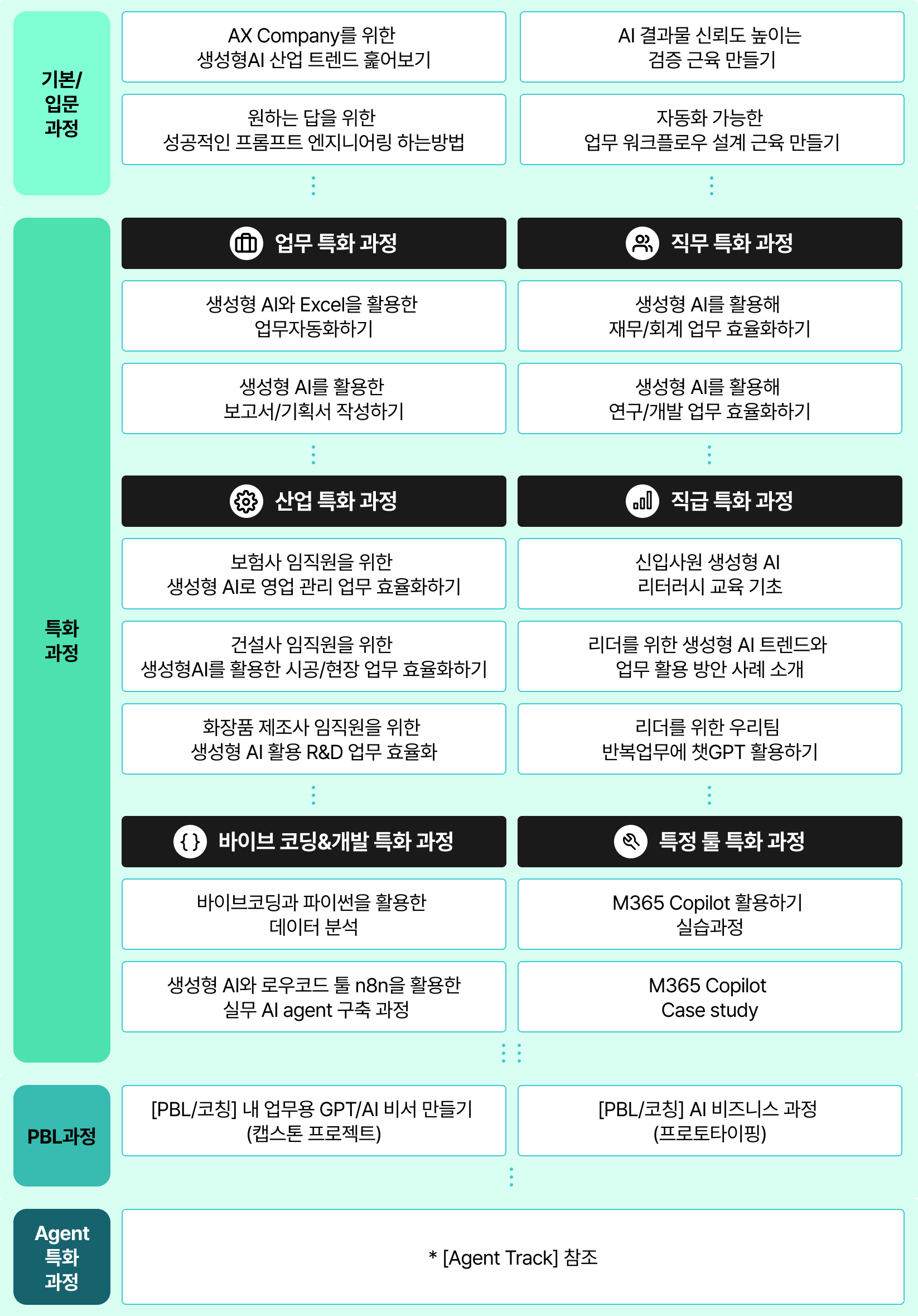 - 생성형 AI Track: 결과물 제작 중심(문서/자료/콘텐츠/업무 자동화)